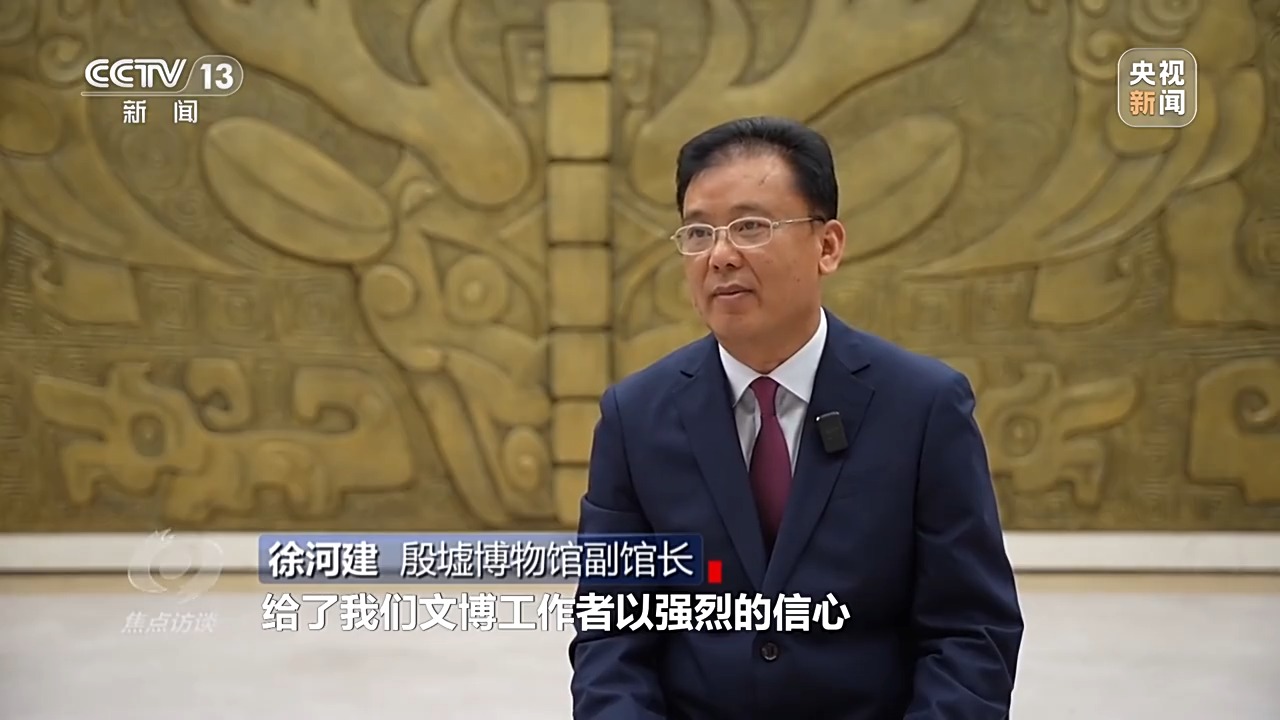 徐河建:總書記到殷墟考察給我們文博工作者強烈的信心,給我們指明了前進的方向、提供了根本遵循。那么,如何傳承?我們綜合運用科技賦能、人工智能、數(shù)字顯能,讓文物活起來。