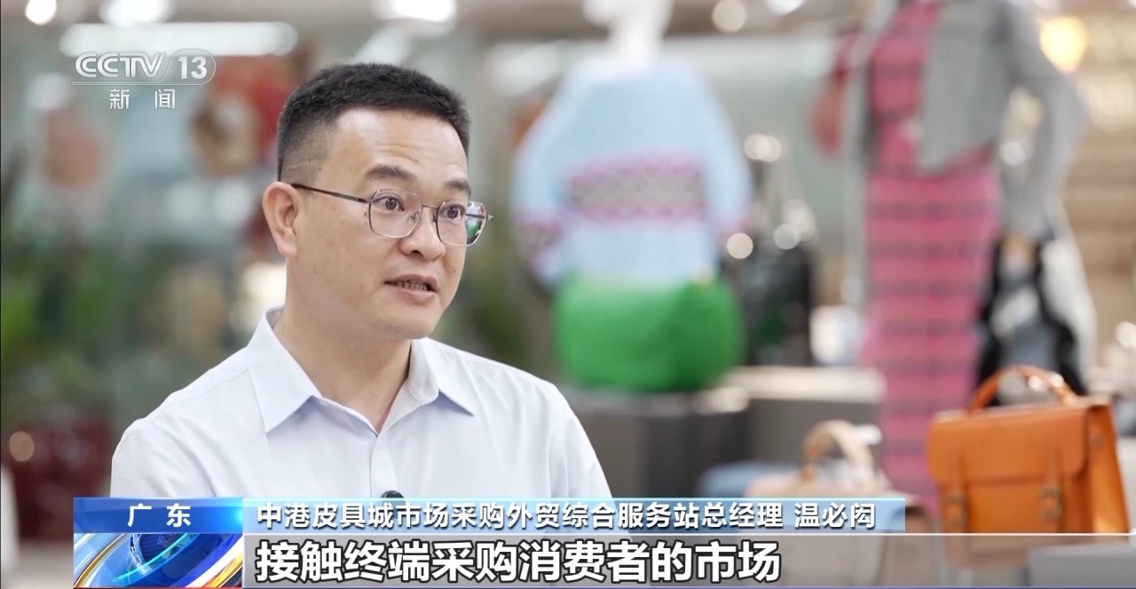 中港皮具城市場(chǎng)采購(gòu)?fù)赓Q(mào)綜合服務(wù)站總經(jīng)理 溫必閎:因?yàn)槲覀兪堑谝皇纸佑|終端采購(gòu)消費(fèi)者的市場(chǎng),比如說我賣某個(gè)包包,這種包包的顏色、大小、款式、價(jià)格,它的銷量如何,直接反饋到這個(gè)產(chǎn)品在當(dāng)?shù)氐囊环N需求量,客戶需求最終轉(zhuǎn)化到這里,給到企業(yè)就是銷量跟產(chǎn)量。