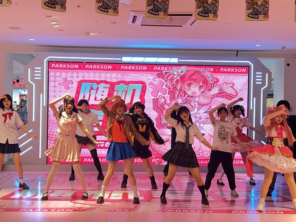 年輕人在百盛購物中心內(nèi)參加隨機(jī)舞蹈。 曹帥奇 攝