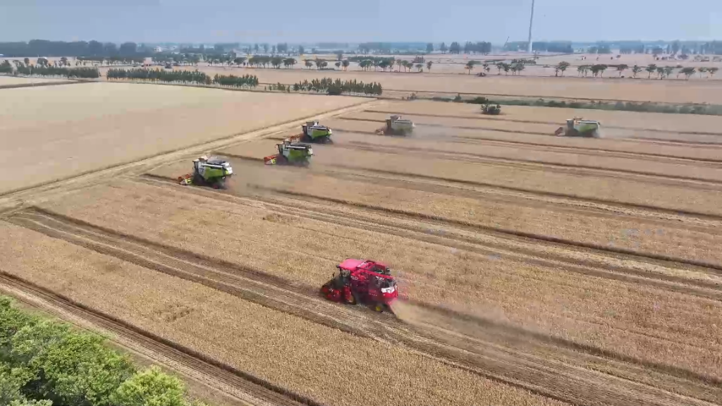 夏收順利,離不開智能收割機(jī)幫忙。記者在河南省南陽(yáng)鄧州市腰店鎮(zhèn)看到,一望無垠的金色麥田里麥浪陣陣,機(jī)聲隆隆。6臺(tái)小麥聯(lián)合收割機(jī)正一字排開,在麥田中“過招”,比拼機(jī)收減損水平。這場(chǎng)機(jī)收減損技能大比武活動(dòng)標(biāo)志著當(dāng)?shù)匦←溣瓉泶竺娣e機(jī)收。