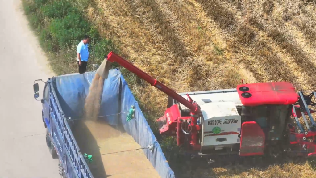 這是河南省鄧州市夏收現(xiàn)場(chǎng)。新華社記者 姜亮、尚昆侖 攝