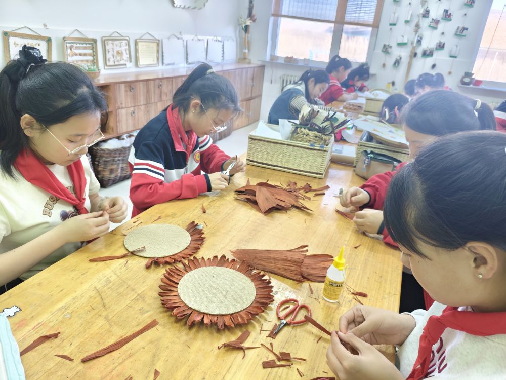 統(tǒng)部小學(xué)有一片十余畝的勞動(dòng)試驗(yàn)田,種滿(mǎn)了玉米。每到秋收時(shí)節(jié),任慧敏就帶著同學(xué)們到田里收集玉米皮,曬干加工成做手工的材料。任慧敏說(shuō):“學(xué)校開(kāi)設(shè)了玉米皮粘貼畫(huà)社團(tuán)課程,用農(nóng)村隨處可見(jiàn)的玉米皮制作粘貼畫(huà),很受學(xué)生們歡迎。”