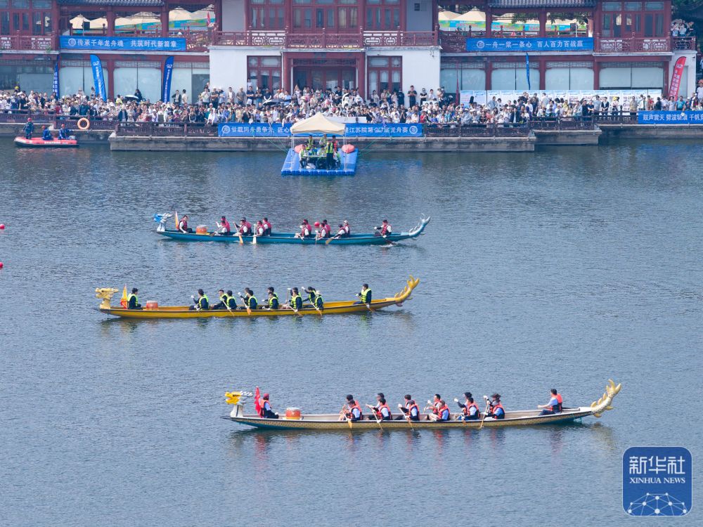 5月24日,龍舟隊伍在南京玄武湖上競逐(無人機(jī)照片)。新華社發(fā)(蘇陽攝)