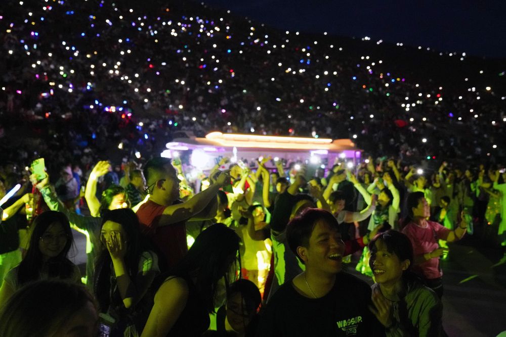 游客在敦煌鳴沙山月牙泉景區(qū)參加萬人星空演唱會(huì)。新華社記者 馬寧 攝
