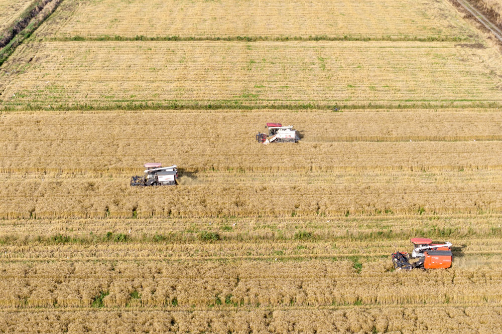 浙江寧波余姚市臨山鎮(zhèn)小麥機(jī)收場景。(張輝 攝)