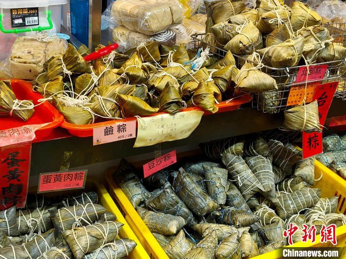 臺(tái)灣端午節(jié)連假期間,臺(tái)北南門市場的粽子種類豐富。中新社記者 張曉曦 攝