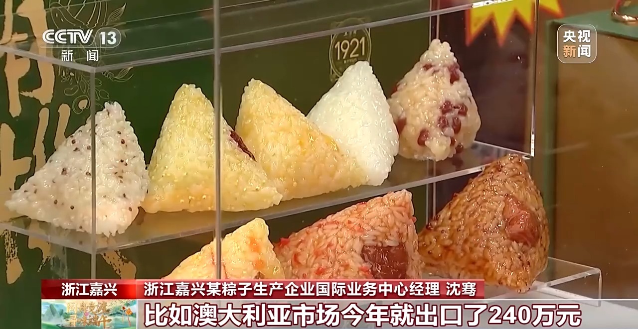 浙江嘉興某粽子生產(chǎn)企業(yè)國(guó)際業(yè)務(wù)中心經(jīng)理 沈騫:今年,我們開(kāi)發(fā)了純植物餡料的素食粽子、低糖粽等細(xì)分品類(lèi),今年以來(lái)已經(jīng)累計(jì)出口了250余萬(wàn)只粽子。東南亞是主要市場(chǎng),我們還開(kāi)拓了加拿大、澳大利亞、新西蘭等10多個(gè)國(guó)家和地區(qū),比如澳大利亞市場(chǎng)今年就出口了240萬(wàn)元,增長(zhǎng)比較明顯。