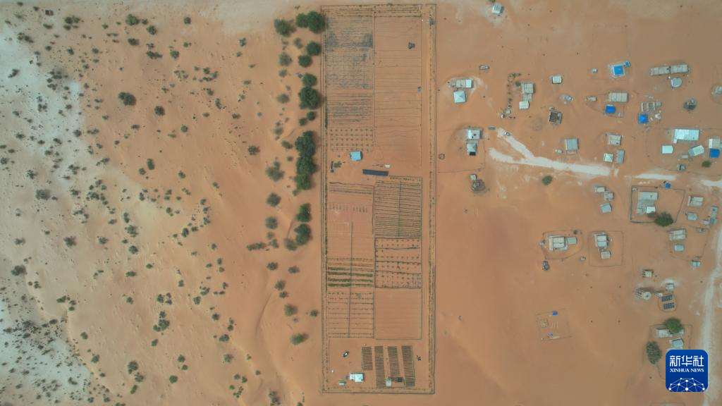 該示范項目由中毛雙方共同實施,中國科學(xué)院新疆生態(tài)與地理研究所提供示范區(qū)建設(shè)與后續(xù)技術(shù)支持。園區(qū)于2024年7月建成,占地4公頃,主要涵蓋外圍防沙阻沙區(qū)域、經(jīng)濟(jì)果林區(qū)、沙土蔬菜種植區(qū)、牧草種植區(qū)及家禽養(yǎng)殖區(qū)。比爾·巴爾卡村位于首都努瓦克肖特以東約70公里的沙漠邊緣?!拔覀儺?dāng)初選址時就考慮靠近首都圈,便于技術(shù)展示和后續(xù)培訓(xùn)推廣。”曾親赴毛里塔尼亞參與項目建設(shè)的中方專家、中國科學(xué)院新疆生態(tài)與地理研究所沙漠研究團(tuán)隊成員周娜介紹說。