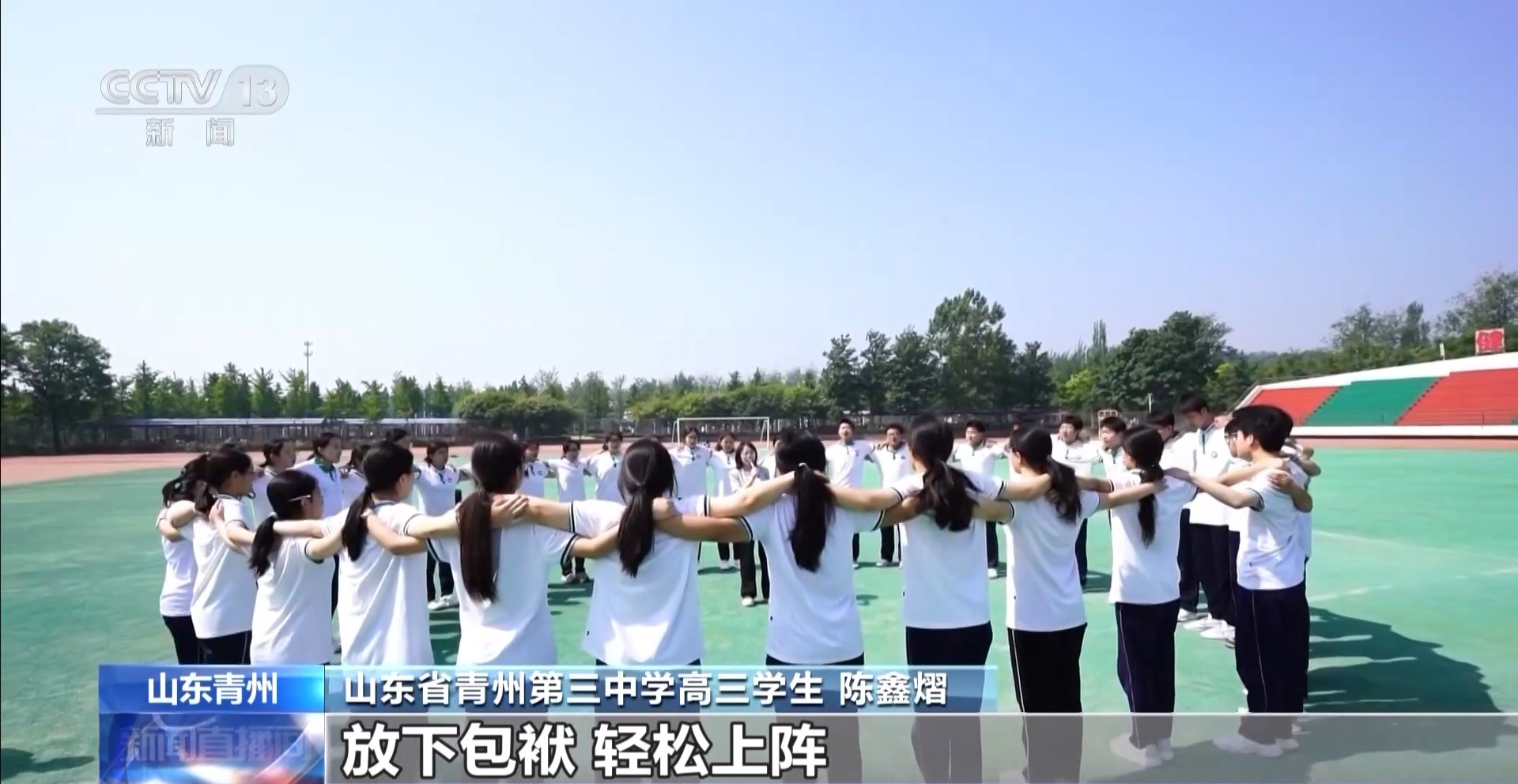 在山東青州第三中學(xué)的操場上,一場專為高三學(xué)生設(shè)計的心理輔導(dǎo)活動正在進行?!巴米游琛薄笆掷帧薄昂白邏毫Α钡热の痘顒?,讓學(xué)生們在歡聲笑語中釋放焦慮。