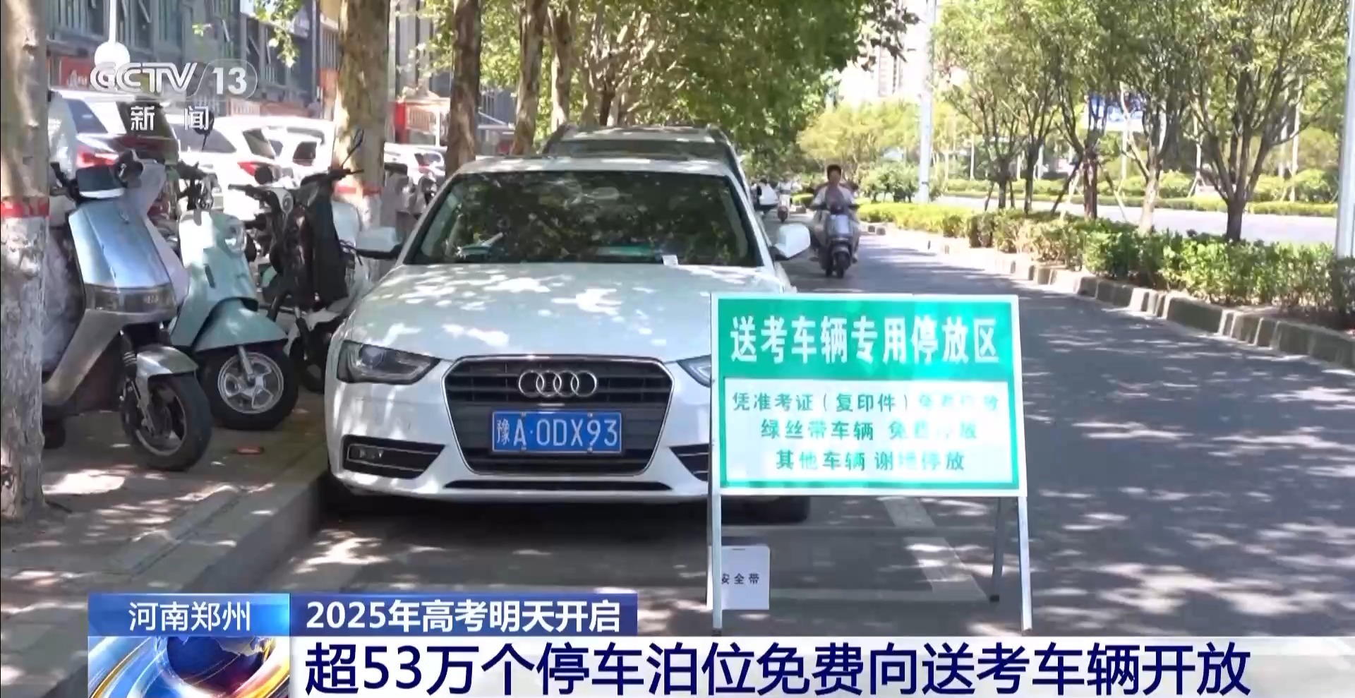 在河南鄭州,公交、城管等部門通過開展噪聲管控、開放免費停車泊位。在鄭州市一個考點附近,周邊的道路停車泊位上,已經(jīng)設(shè)置了“送考車輛專用停放區(qū)”的引導(dǎo)牌。旁邊一個經(jīng)營性停車場,考試期間也向送考車輛免費開放。據(jù)了解,今年高考期間,鄭州城管部門共設(shè)置各類高考停車泊位超53萬個。