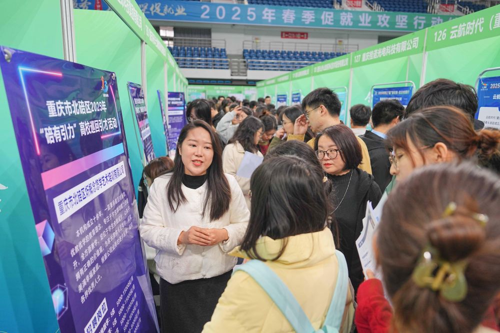 3月28日,西南大學應屆畢業(yè)生在2025年春季促就業(yè)攻堅行動綜合類雙選會現(xiàn)場了解崗位信息?;顒友堁b備制造、新能源、數(shù)字信息、綠色化工、基礎(chǔ)教育、醫(yī)療衛(wèi)生等行業(yè)領(lǐng)域企業(yè)參與,為畢業(yè)生搭建廣闊多元的就業(yè)平臺。新華社發(fā)(秦廷富攝)