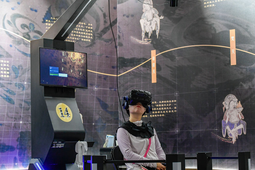 5月17日,游客通過VR設備游覽太原北齊壁畫博物館。新華社記者 楊晨光 攝