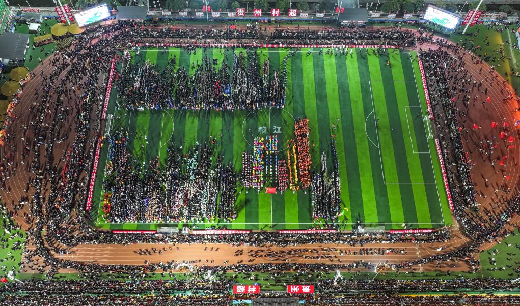 這是2025年貴州“村超”開幕式現(xiàn)場(無人機(jī)照片)。新華社記者 楊文斌 攝