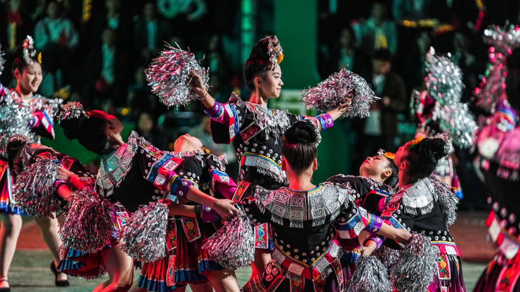 演員在大地流彩·2025年全國和美鄉(xiāng)村籃球大賽(村BA)啟動儀式上進(jìn)行歌舞表演。新華社記者 陶亮 攝