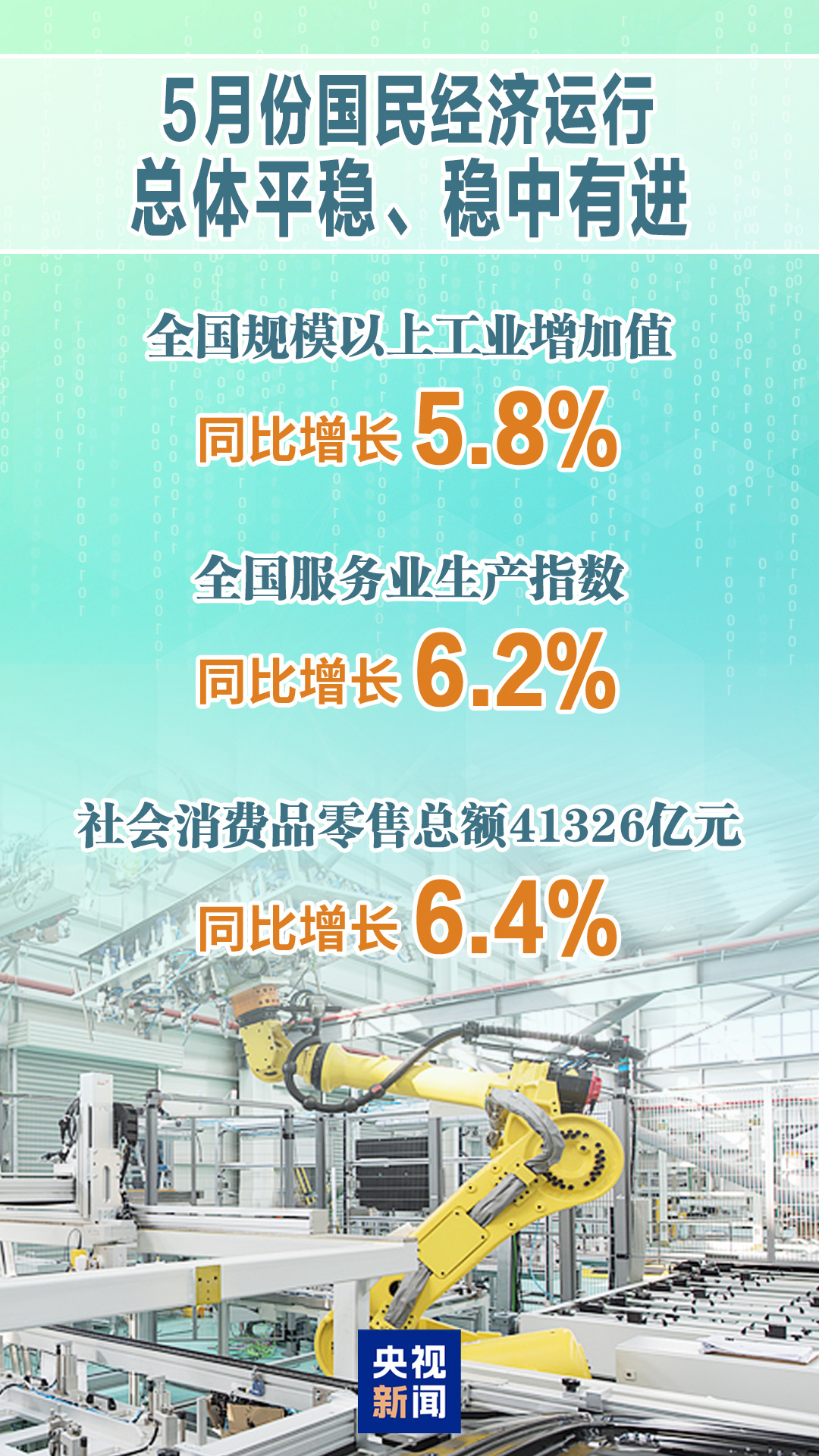 今天(6月16日)上午10時(shí),國務(wù)院新聞辦召開新聞發(fā)布會,國家統(tǒng)計(jì)局介紹了5月份國民經(jīng)濟(jì)運(yùn)行情況。相關(guān)負(fù)責(zé)人表示,隨著我國加緊實(shí)施更加積極有為的宏觀政策,5月份,國民經(jīng)濟(jì)頂住壓力平穩(wěn)運(yùn)行,生產(chǎn)需求穩(wěn)定增長,就業(yè)形勢總體穩(wěn)定,新動能成長壯大,高質(zhì)量發(fā)展向優(yōu)向新。