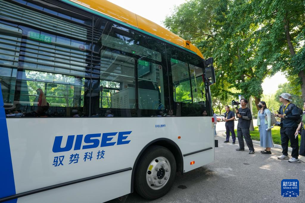 參觀者在體驗(yàn)北京馭勢科技的一款無人駕駛巴士(6月16日攝)。新華社記者 鞠煥宗 攝