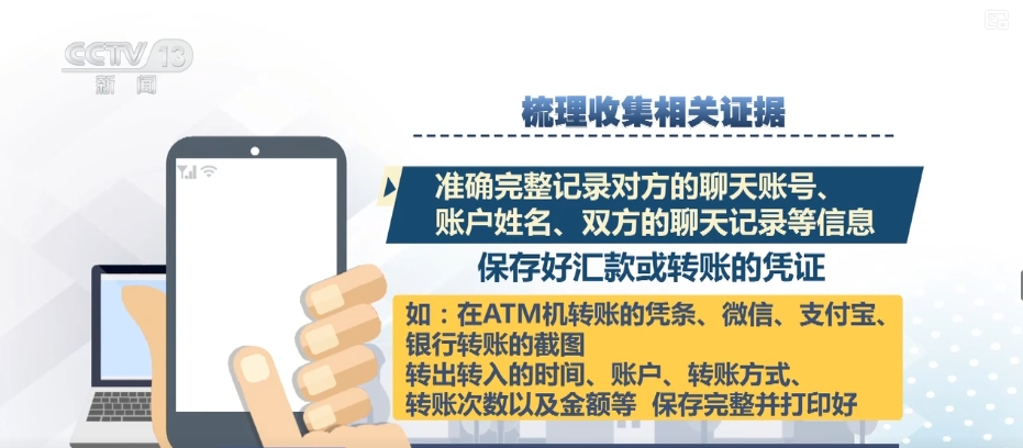 然后記住抓緊梳理收集相關證據,準確完整記錄對方的聊天賬號、賬戶姓名、雙方的聊天記錄等信息;保存好匯款或轉賬的憑證,如在ATM機轉賬的憑條、微信、支付寶、銀行轉賬的截圖;轉出轉入的時間、賬戶、轉賬方式、轉賬次數以及金額等,保存完整并打印好。最后,您需要盡快前往最近的派出所,進行現場報案。在這里,您要配合公安機關做好詢問筆錄,提供相關證據。