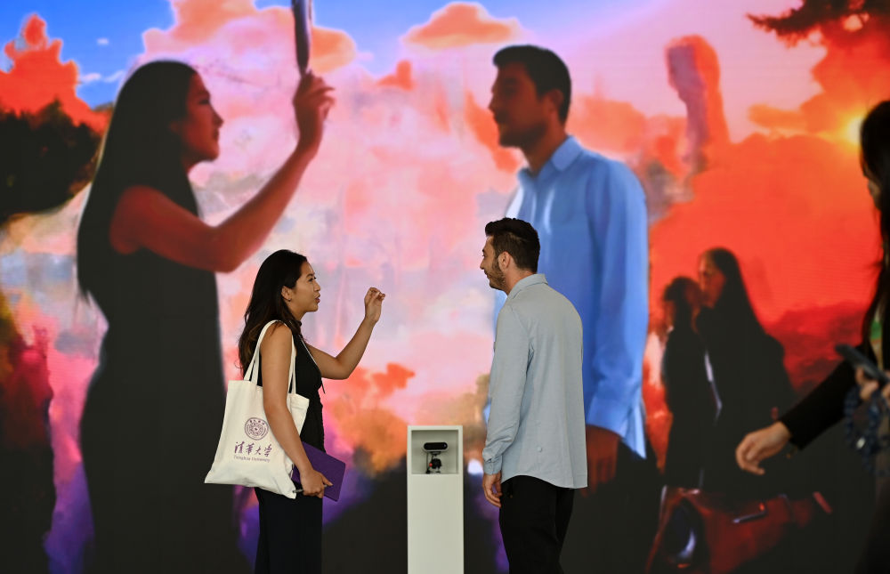 科大訊飛帶來的虛擬人智能交互機也吸引眾多嘉賓駐足體驗??拼笥嶏w天津公司市場經理王丹寧介紹,結合AI虛擬人技術,智能交互機能夠實現語音識別、語義理解和語音合成,讓用戶和虛擬人物形象“面對面”交流。