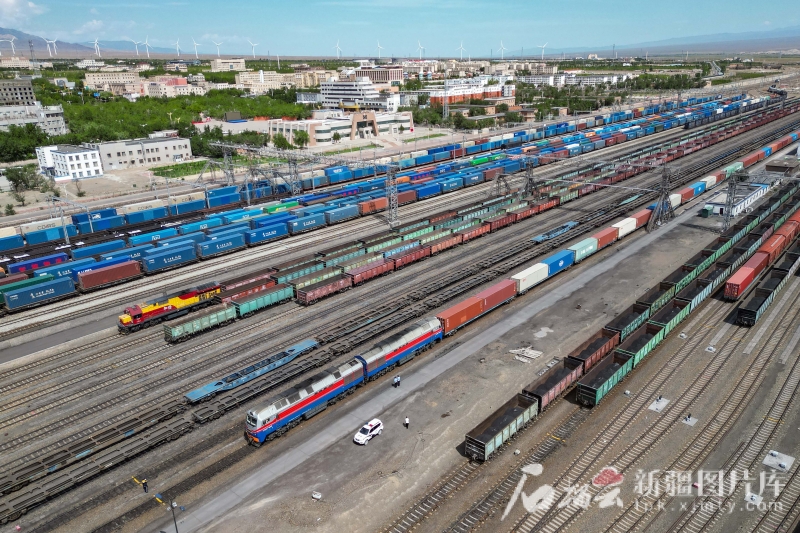 6月24日,阿拉山口站內(nèi)一列列中歐(中亞)班列整裝待發(fā)。蔡增樂(lè) 攝