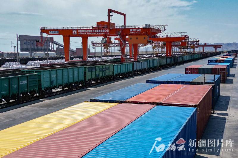 雄關(guān)矗立,汽笛聲聲。當(dāng)長(zhǎng)風(fēng)掠過(guò)鋼軌,千年古道回響著新時(shí)代的鏗鏘足音。在阿拉山口站中歐(中亞)班列換裝區(qū),集裝箱方陣在吊臂間精準(zhǔn)流轉(zhuǎn),如跳動(dòng)的音符譜寫(xiě)著亞歐大陸的經(jīng)貿(mào)交響。這座向西開(kāi)放的“黃金樞紐”,正以分秒必爭(zhēng)的效率律動(dòng),奏響中歐(中亞)班列馳騁新絲路的進(jìn)行曲——鋼鐵駝隊(duì)晝夜不息,為絲綢之路經(jīng)濟(jì)帶注入澎湃的時(shí)代動(dòng)能。