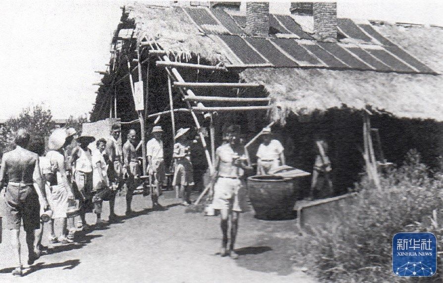 上海龍華集中營里,人們在排隊取水(資料照片)。新華社發(fā)(上海中學(xué)供圖)