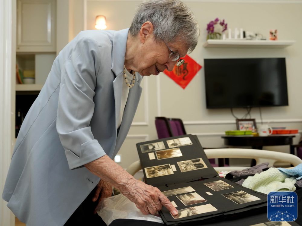 2025年6月13日,白麗詩在養(yǎng)老院的房間里翻看老照片。
