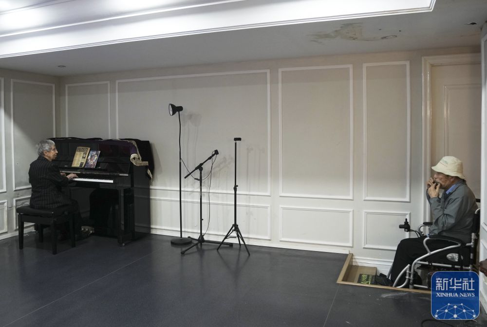 2025年6月13日,白麗詩彈鋼琴,王正文吹口琴。這樣的合奏是兩人最喜歡的娛樂。