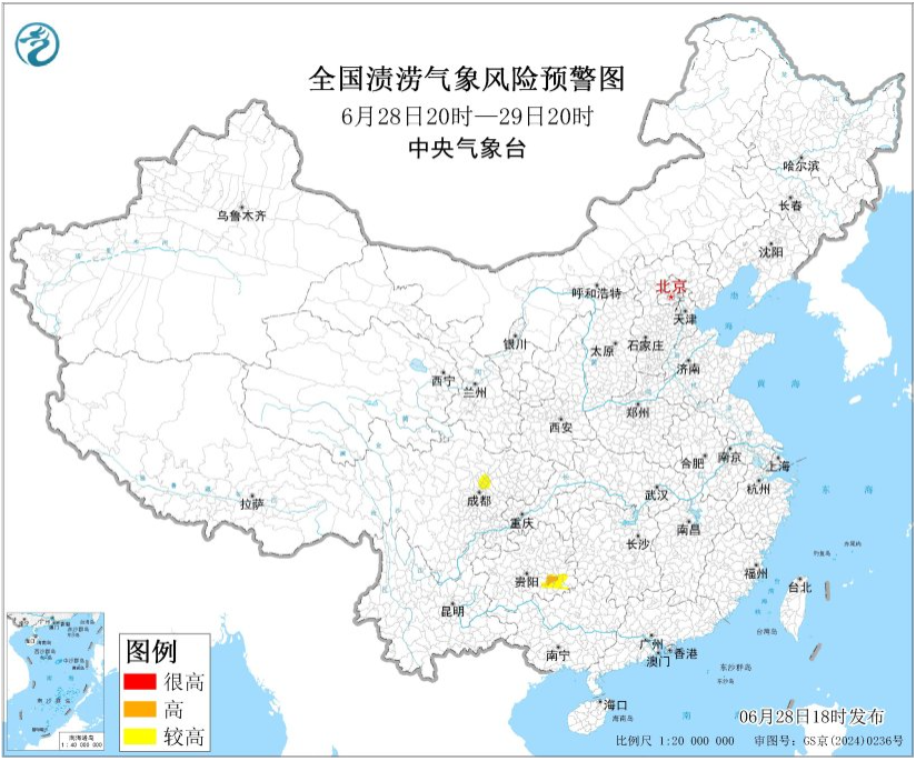 中央氣象臺(tái)6月28日18時(shí)發(fā)布中小河流洪水氣象風(fēng)險(xiǎn)預(yù)警:
