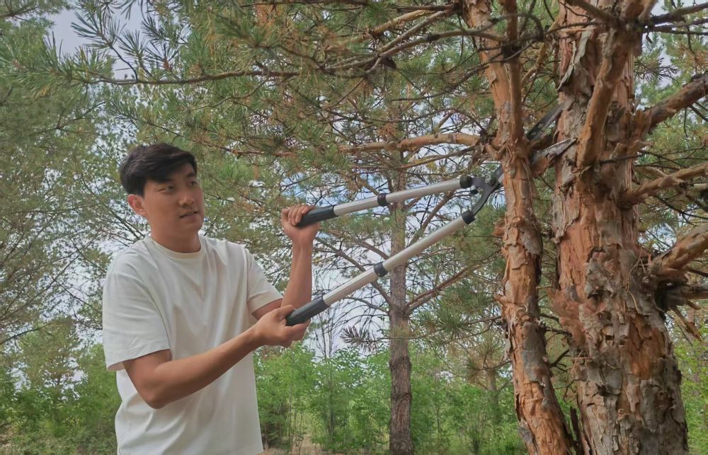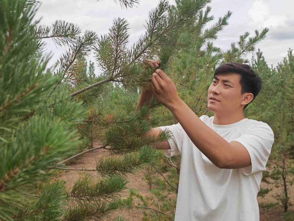 2017年,在爺爺?shù)膸ьI(lǐng)下,石健陽(yáng)正式投身植綠事業(yè)。“過(guò)去沙害嚴(yán)重,老一輩治沙人最迫切的是要定住風(fēng)沙,讓地面先綠起來(lái),所以當(dāng)時(shí)的樹種主要是生長(zhǎng)快的楊樹。”石健陽(yáng)說(shuō),“幾十年過(guò)去,楊樹林老化嚴(yán)重,出現(xiàn)大面積枯死的情況。我們現(xiàn)在陸續(xù)對(duì)老化的林地進(jìn)行樹種更換,補(bǔ)種四季常青、生命周期更長(zhǎng)的樟子松,目前已經(jīng)補(bǔ)種了5萬(wàn)畝?!?/p>