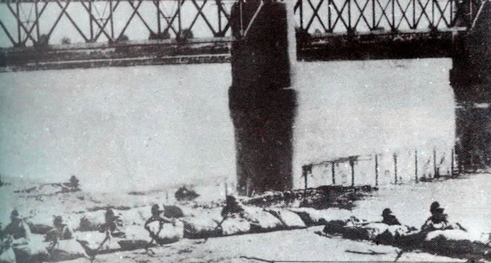 這是江橋抗戰(zhàn)。1931年11月,進(jìn)犯黑龍江的日軍在嫩江橋遭到黑龍江步兵第3旅旅長(zhǎng)馬占山部頑強(qiáng)抵抗。新華社發(fā)