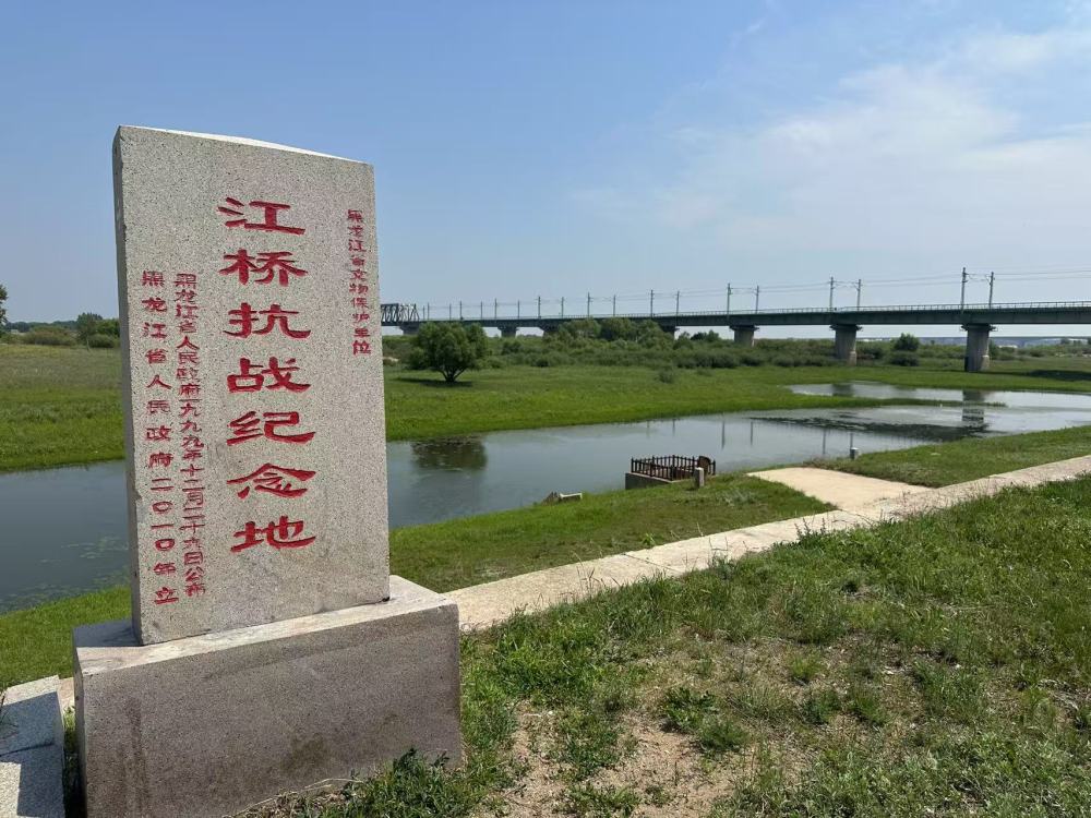 嫩水江畔,斑駁的石碑肅立,湍急的江水沖刷著堤岸,老江橋僅存的橋墩遺址已淹沒(méi)在水下,無(wú)聲訴說(shuō)著九十多年前的硝煙與過(guò)往。