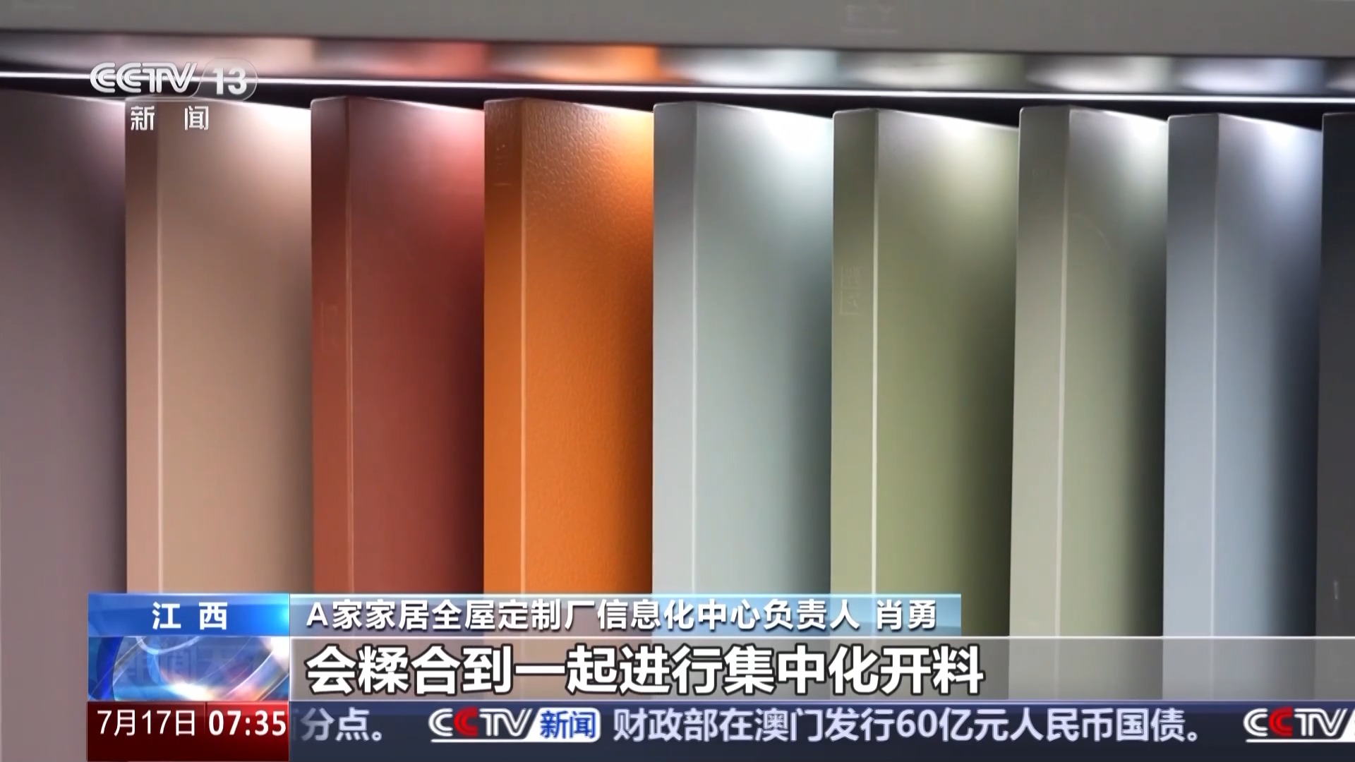 如此高效的個(gè)性化定制得益于企業(yè)的智能化生產(chǎn)系統(tǒng)??蛻舻脑O(shè)計(jì)方案被迅速轉(zhuǎn)化為數(shù)據(jù)發(fā)送至工廠。與傳統(tǒng)“一單一做”不同,這家工廠通過(guò)智能算法,將多個(gè)訂單中顏色、規(guī)格相近的板材按需求集中優(yōu)化開(kāi)料。