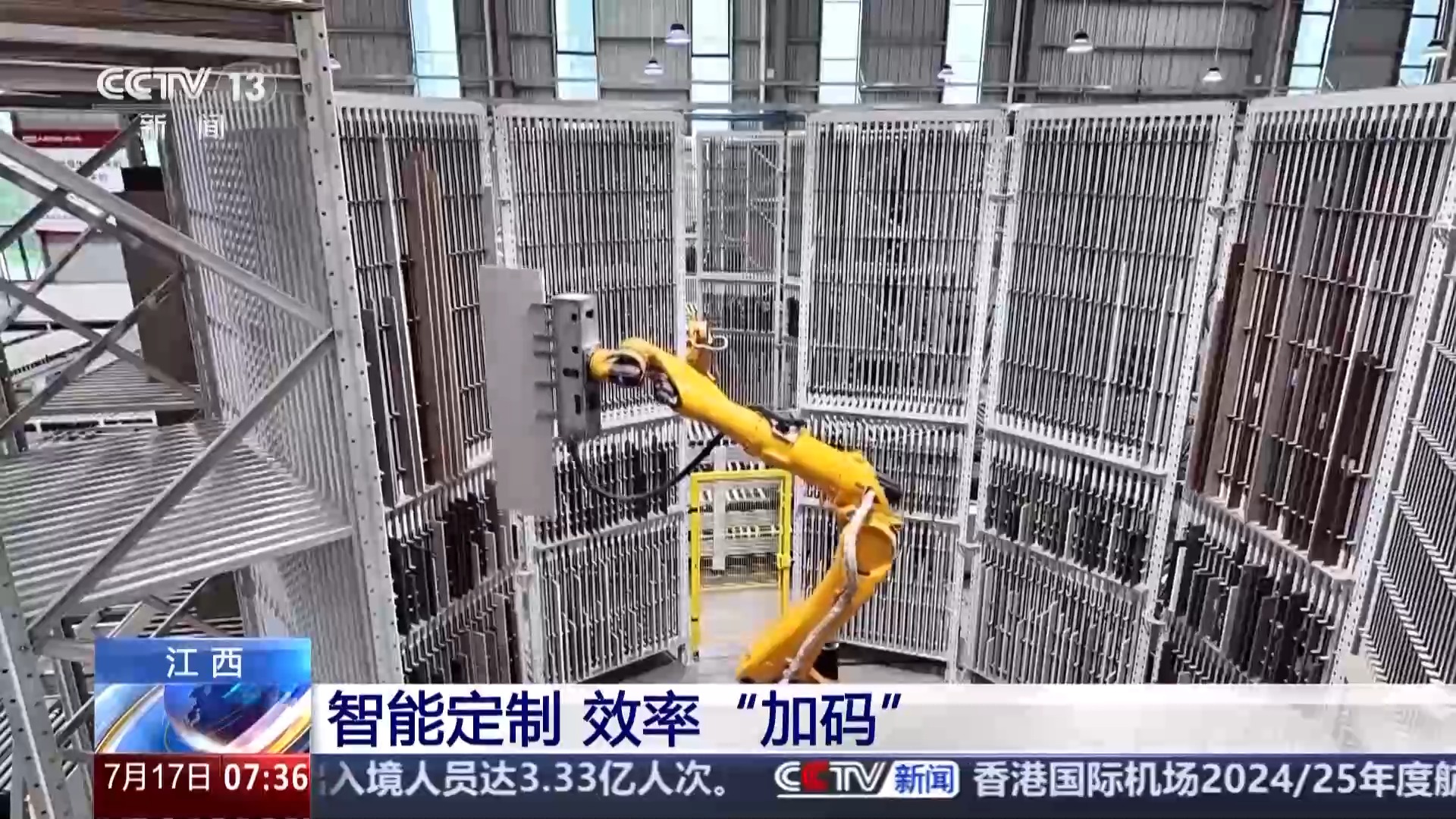 總臺(tái)央視記者 張琪:分揀機(jī)械臂正將加工好的木板快速存放在書(shū)本架上,這一個(gè)單元的書(shū)架可以存放480片部件板,打造10個(gè)柜子,夠一個(gè)家庭使用。