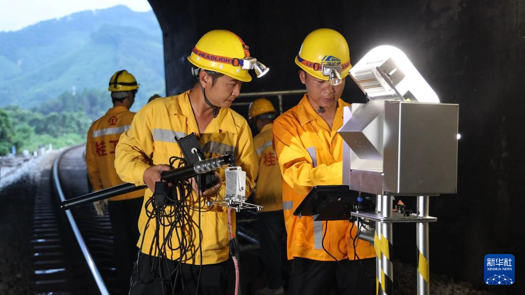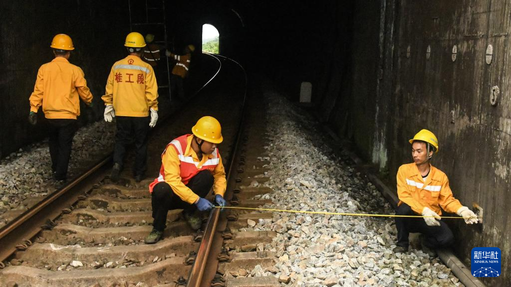 暑運期間,在湘桂鐵路(廣西段)沿線,國鐵南寧局桂林工務(wù)段13名橋隧工人日夜穿梭于桂北的崇山峻嶺間,對管段內(nèi)的10座隧道、1075座涵洞進(jìn)行多維度巡檢、排查隱患,確保湘桂鐵路線上暑運客貨列車的安全運行。