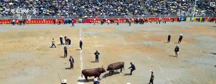 在位于四川涼山的普格縣,傳統(tǒng)點火儀式拉開了當(dāng)?shù)叵盗谢顒拥男蚰?,傳統(tǒng)歌舞千人朵洛荷驚艷四方。身著五彩彝繡盛裝的姑娘們手持黃傘,隨悠揚旋律翩躚起舞。斗牛比賽在普格縣火把廣場上演巔峰對決,強壯的公牛的每一次抵角、閃躲都引得現(xiàn)場一片歡呼。