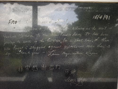 這是瓊·尤恩的外孫女莎娜在1991年回訪位于安徽省宣城市涇縣云嶺鎮(zhèn)的新四軍軍部舊址時(shí)留下的感言,已被鐫刻在新四軍軍部(司令部)舊址內(nèi)。感言中寫道:“感謝讓我們有機(jī)會(huì)參觀云嶺新四軍紀(jì)念館。能短暫追隨那些多年前為反抗壓迫而戰(zhàn)斗的英雄足跡,我們深感榮幸。謝謝。” 新華社記者 郭晨 攝