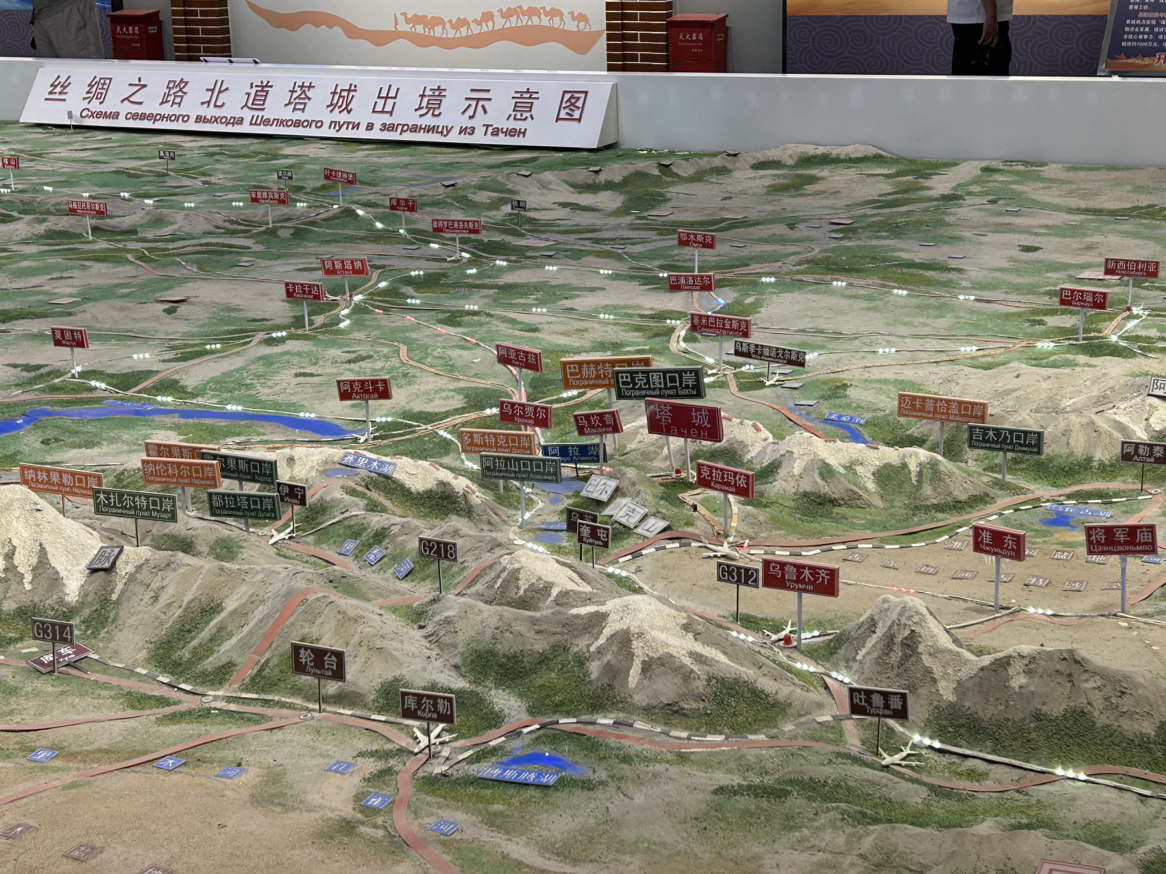 在巴克圖口岸文化展示館,解說員趙倩指著一張乾隆年間的易貨貿易圖介紹:“從1764年民間駝隊往來,到1854年正式通商,這里始終是亞歐大陸重要的貿易走廊?!别^內沙盤清晰呈現“一核、兩廊、三區(qū)”新布局,2025年上半年數據顯示,口岸出入境人員同比增長167.82%,通關時間較往年縮短40%?!艾F在的司機用手機APP就能完成申報,邊民互市‘整進整出’模式讓貿易更高效。”趙倩說道。