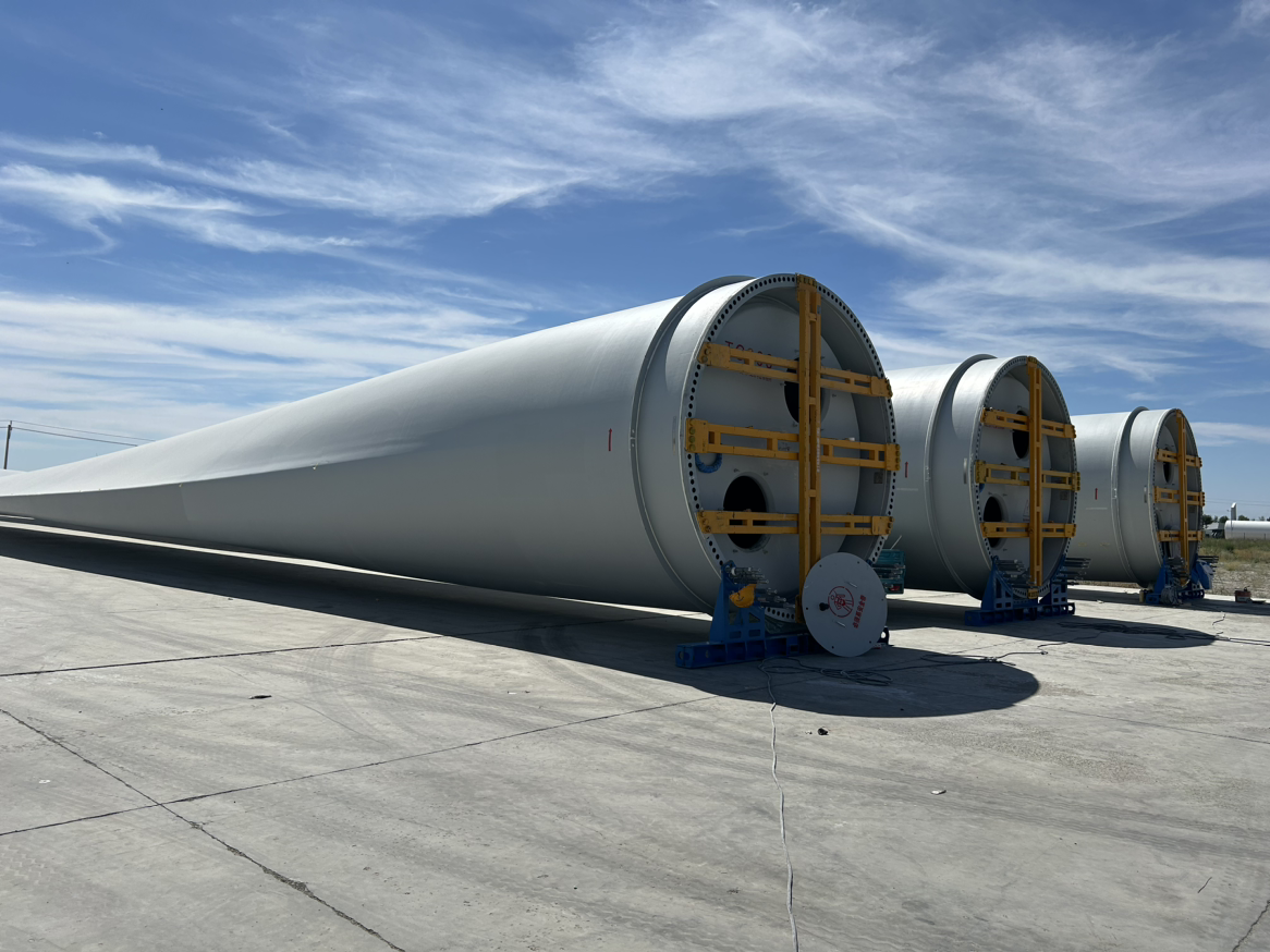 距口岸8公里的塔城重點開發(fā)開放試驗區(qū)建設現場,三一風電的巨型葉片正等待出口?!拔覀兩a的葉片單只長度達112米,重達41噸,平均每80個工時可以生產一只,單只的成本價在120萬左右。目前,我們公司接收著來自世界各地的訂單” ,塔城風電設備有限公司行政事務專員阿斯哈爾 阿根三一表示。