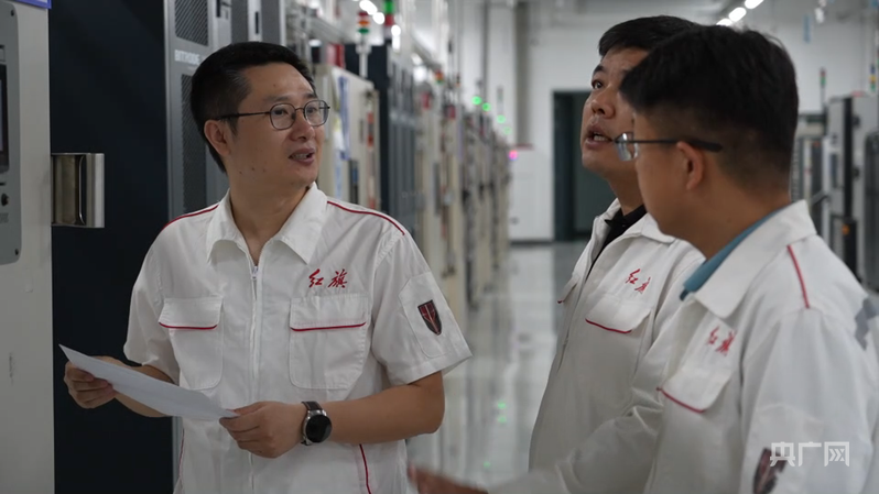 趙洪輝與同事們交流電池安全結(jié)構(gòu)攻關(guān)問(wèn)題(央廣網(wǎng)記者 舒震 攝)