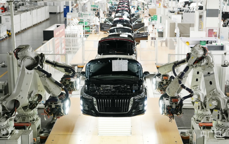 在中國(guó)一汽紅旗繁榮廠區(qū),14條自動(dòng)生產(chǎn)線(xiàn)每天能裝配下線(xiàn)500余輛汽車(chē),這一速度讓這座工廠穩(wěn)居國(guó)內(nèi)汽車(chē)制造第一梯隊(duì)。