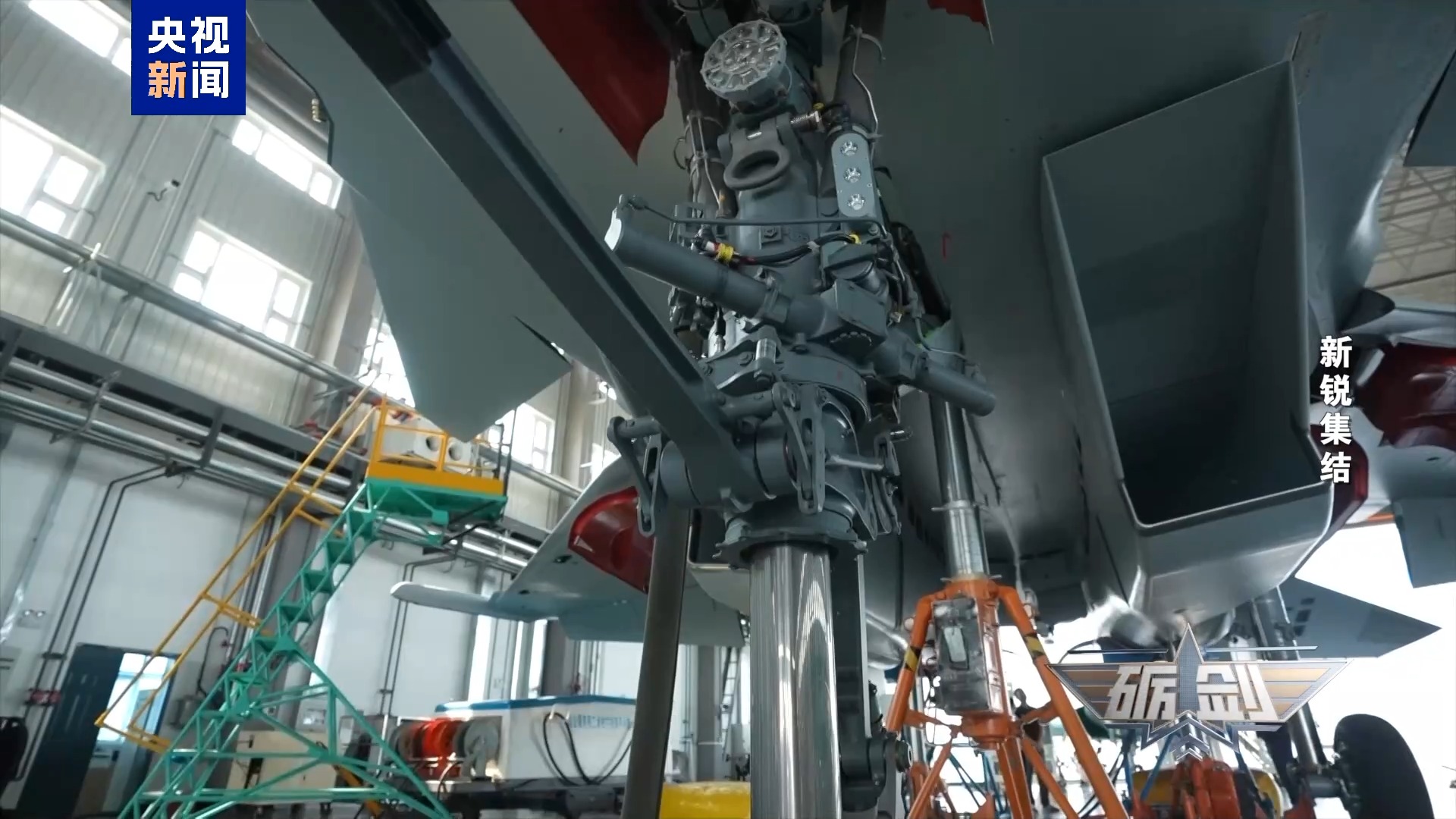 空軍特級飛行員 殲-15首飛試飛員 李國恩:起落架設(shè)計還是比較復(fù)雜的。一是對強度的考驗,二是在前起落架觸及甲板的時候,能量比較好地得到釋放緩沖,這是前起落架設(shè)計的一個難點。你可以看到與其他的陸基飛機比,這個起落架要粗。我國工業(yè)水平整體也在進步,未來我們希望它結(jié)構(gòu)要細(xì)一點、輕一點,飛機越輕,空中的性能越好。