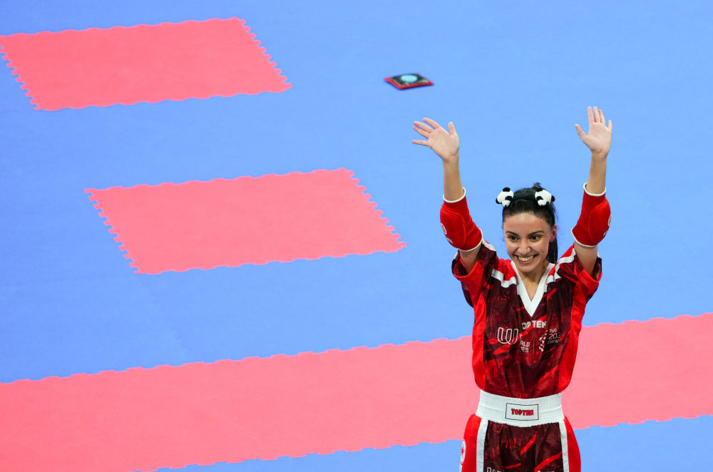 土耳其姑娘克倫奇是重度熊貓愛好者,贏下自由搏擊女子半接觸50公斤級半決賽后,她從容摘下護(hù)具,拿出一枚熊貓發(fā)卡戴在頭上。而她的背包里,足足塞了13個(gè)熊貓紀(jì)念品。