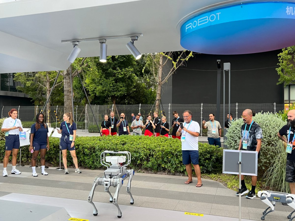 戴上AR翻譯眼鏡,葡萄牙運(yùn)動(dòng)員和德國選手開啟無障礙暢聊;美國選手一句“GoGo,帶我去熊貓商店”,智能機(jī)器狗聞聲而動(dòng);土耳其選手和智能運(yùn)動(dòng)搭子練起了球;澳大利亞姑娘欣賞著美甲機(jī)器人噴繪的熊貓圖案……
