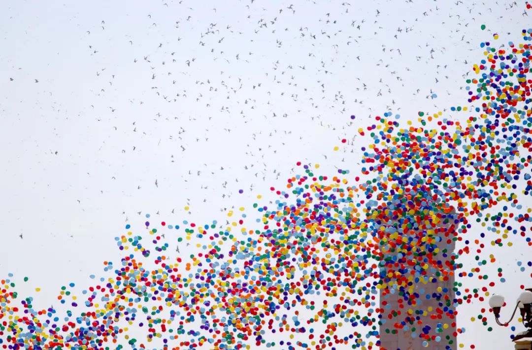 2015年9月3日,中國人民抗日戰(zhàn)爭暨世界反法西斯戰(zhàn)爭勝利70周年紀(jì)念大會在北京隆重舉行。這是紀(jì)念大會現(xiàn)場放飛氣球和白鴿。新華社記者 張加揚(yáng) 攝