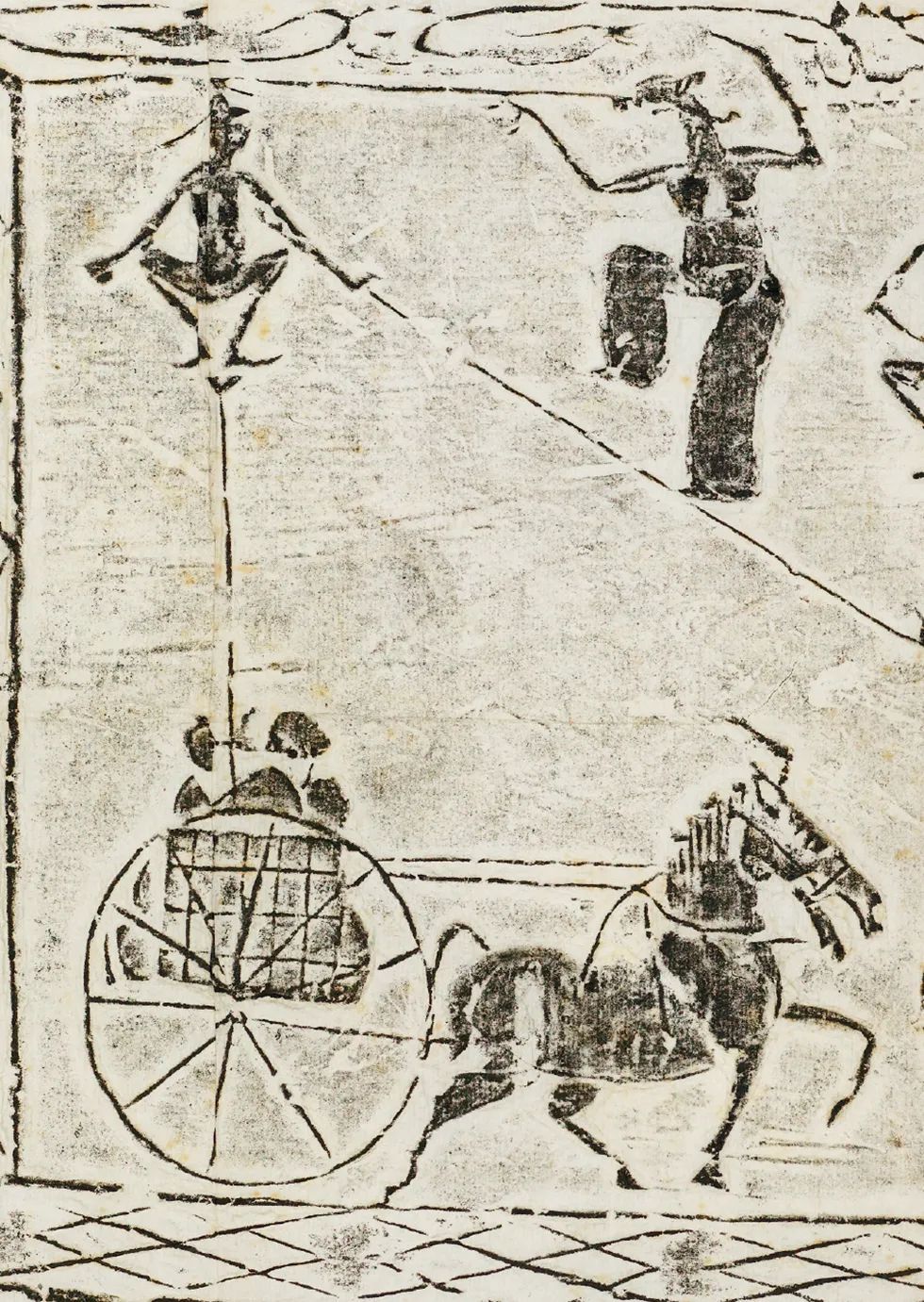 斜索戲車畫像磚以線面結合的手法分層敘事