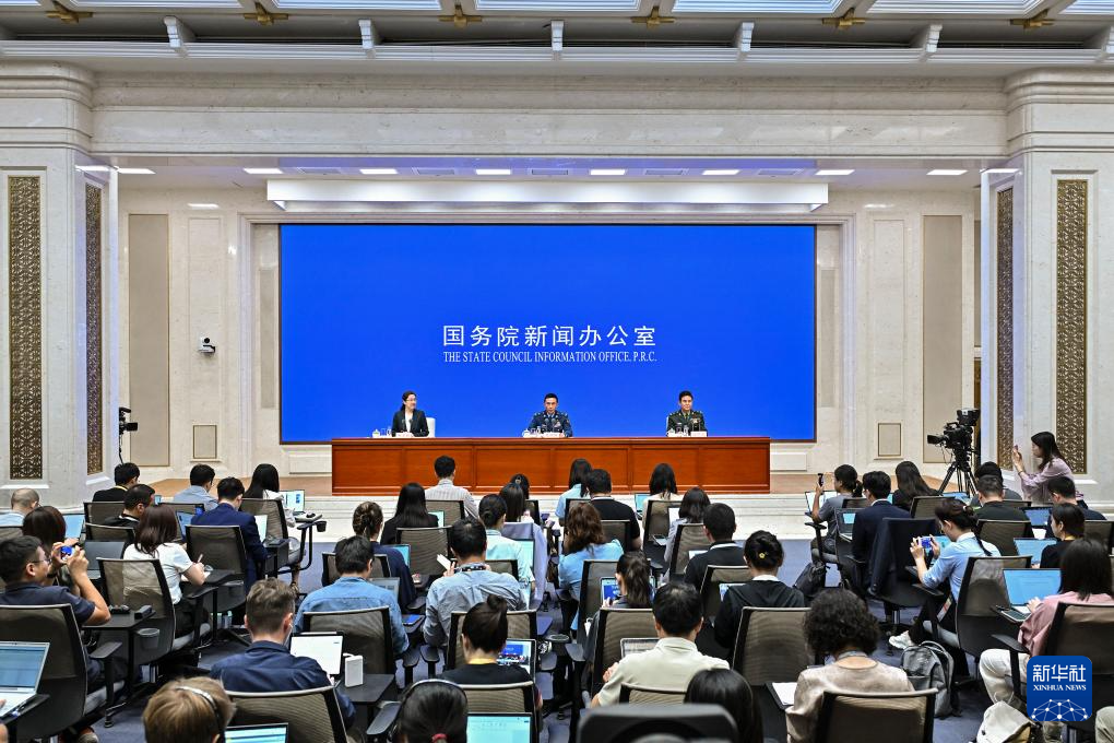 8月20日,國務(wù)院新聞辦公室在北京舉行新聞發(fā)布會,閱兵領(lǐng)導(dǎo)小組辦公室副主任、中央軍委聯(lián)合參謀部作戰(zhàn)局少將副局長吳澤棵,中國人民解放軍中部戰(zhàn)區(qū)閱兵指揮機構(gòu)辦公室常務(wù)副主任、政治工作部少將副主任徐貴忠介紹閱兵準(zhǔn)備工作有關(guān)情況,并答記者問。新華社記者 李鑫 攝