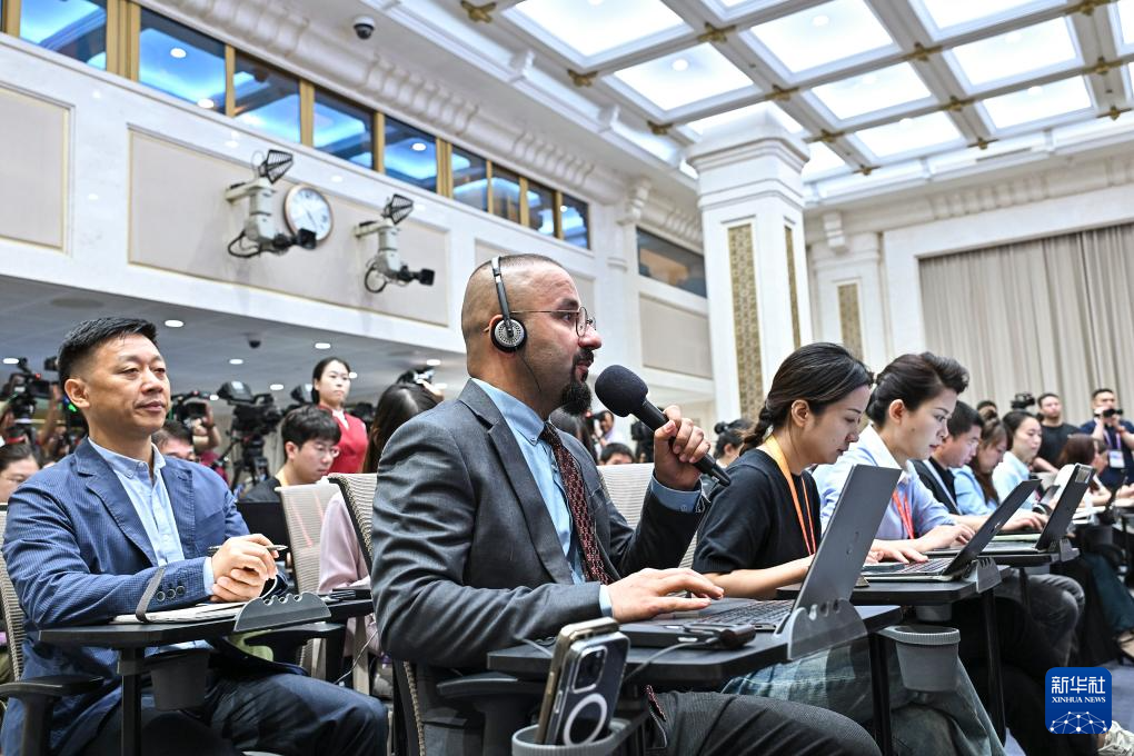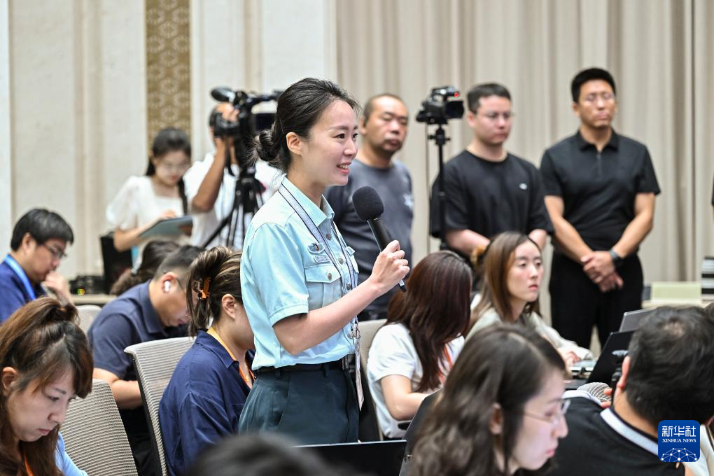 8月20日,國務(wù)院新聞辦公室在北京舉行新聞發(fā)布會,閱兵領(lǐng)導(dǎo)小組辦公室副主任、中央軍委聯(lián)合參謀部作戰(zhàn)局少將副局長吳澤棵,中國人民解放軍中部戰(zhàn)區(qū)閱兵指揮機構(gòu)辦公室常務(wù)副主任、政治工作部少將副主任徐貴忠介紹閱兵準(zhǔn)備工作有關(guān)情況,并答記者問。這是記者在現(xiàn)場提問。新華社記者 李鑫 攝