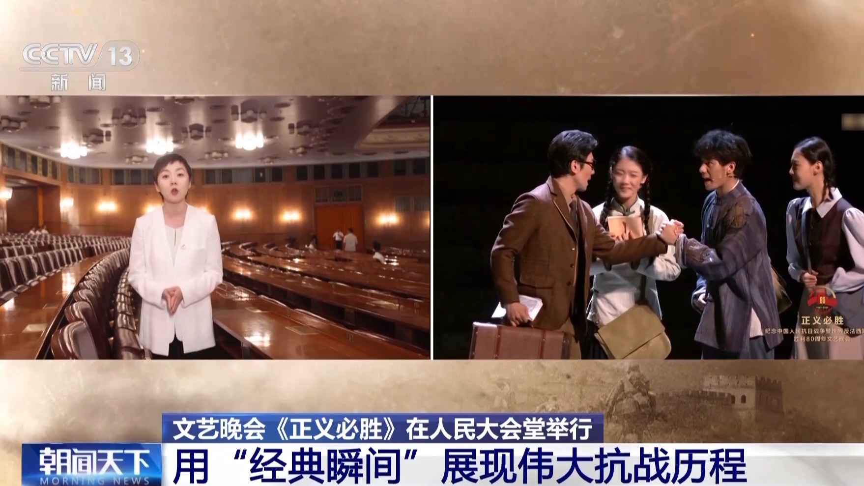 3日晚,紀(jì)念中國人民抗日戰(zhàn)爭暨世界反法西斯戰(zhàn)爭勝利80周年文藝晚會《正義必勝》在人民大會堂舉行。