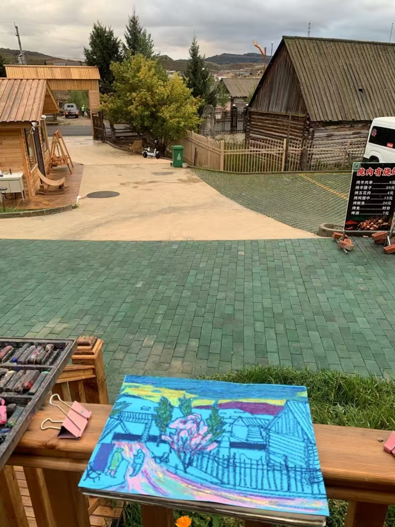 夕陽西下,余暉為鐵熱克提鄉(xiāng)染上一層溫暖金色。正值“丹青墨彩助力鄉(xiāng)村振興”全國名家赴阿勒泰地區(qū)采風寫生活動在此開展,新疆畫院畫家徐江峰立于村頭,畫板上木屋錯落、遠山如黛,“這些木屋依地勢而建,高低起伏,極富節(jié)奏,是最入畫的題材。它們不僅體現(xiàn)人與自然的和諧,更承載著這片土地團結向上的生活氣息?!?/p>