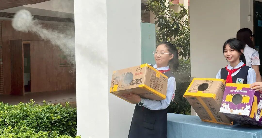 9月1日,在西安市浐灞第二小學(xué)各年級(jí)一樓的未來(lái)科學(xué)院里,“空氣的力量”實(shí)驗(yàn)正在精彩上演:學(xué)生們手持自制空氣炮,輕輕一推,“砰”的一聲,煙霧圓環(huán)隨即而出,在現(xiàn)場(chǎng)“哇”聲一片里,感受科學(xué)的力量和魅力。